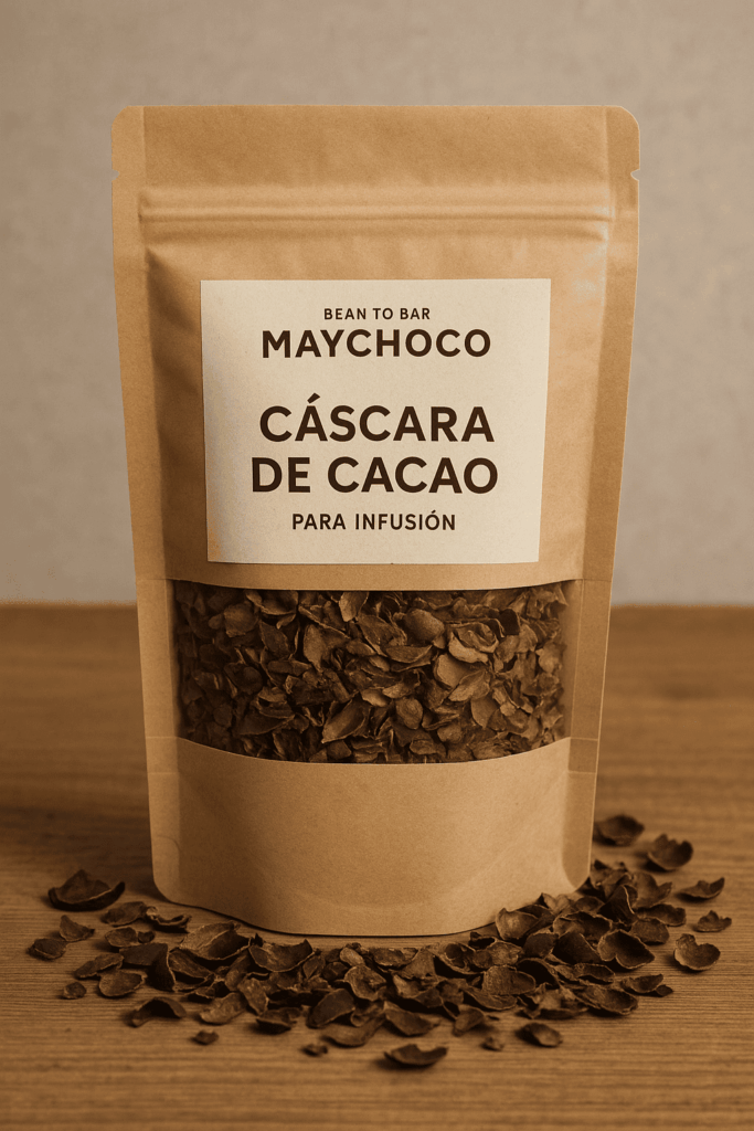Nuestra cáscara de cacao es el resultado directo de nuestro proceso Bean to Bar, elaborada de manera artesanal en nuestro obrador a partir de granos de cacao de origen cuidadosamente seleccionados.