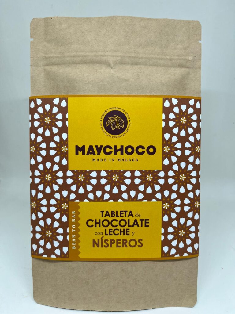 This 55% cocoa chocolate bar from Piura (Peru) with milk and loquats from Sayalonga, a municipality in the Axarquia region of Malaga, which grows this orange, fleshy, sweet fruit with a touch of acidity, is the perfect blend for our Dark Milk.